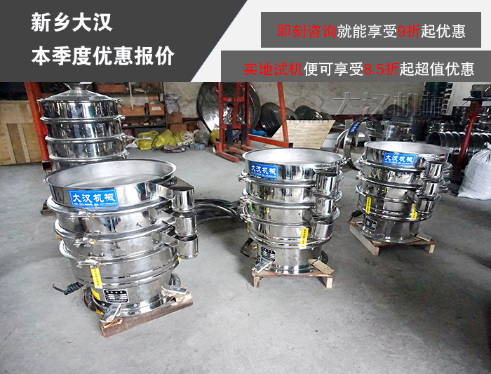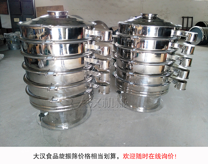 以上是對食品旋振篩多少錢的介紹,有關食品旋振篩詳細報價單,您可以隨時咨詢新鄉大漢姐夫,廠家會有專業銷售經理與您對接,提供給您全面詳細的報價單,并指導設備選型工作。
