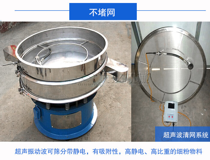 超聲波振動篩是在普通旋振篩的基礎上舉行改良,使用了超聲振動波,能夠篩分旋振篩不能篩分的細粉物料比如帶靜電,有吸附性,高靜電、高比重的物料,減少乳糖因粘性導致的堵網現象。