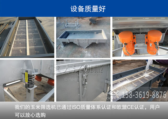 在玉米篩選機(jī)選材開始,到設(shè)備送到用戶手中為止,我們將高品質(zhì)滲透在每一個細(xì)節(jié)內(nèi),一直致力于把好的設(shè)備和好的施工工藝介紹給用戶,保證用戶利益大化,我們的玉米篩選機(jī)選用厚度在10-12mm之間的板材,設(shè)備生產(chǎn)過程中優(yōu)嚴(yán)格的質(zhì)量管理,能夠極大地提高設(shè)備的品質(zhì),穩(wěn)定設(shè)備的性能,目前,我們的玉米篩選機(jī)已通過ISO質(zhì)量體系認(rèn)證和歐盟CE認(rèn)證,用戶可以放心選購。