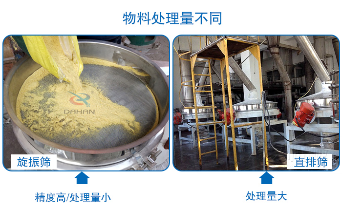 直排篩則多用于面粉、淀粉、洗衣粉、金屬粉、添加劑、化工、非礦等行業的顆粒粉末的粗略篩分、篩分精度可達400目,處理量大、易與生產線結合。