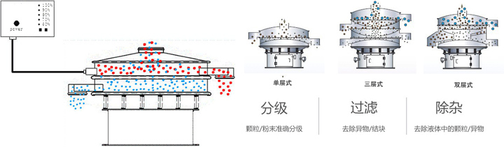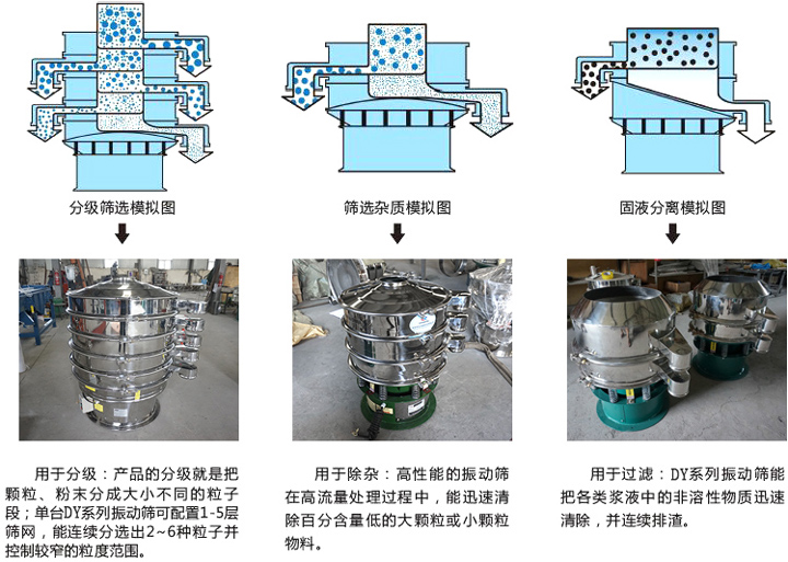 在篩箱的振動作用下,物料在篩面上產(chǎn)生螺旋狀運動。較大的物料被離心力推向篩箱的外側(cè),而較小的物料則逐漸通過篩孔,落入下方的出料口。篩孔的大小可以根據(jù)物料的要求進行選擇,以實現(xiàn)不同粒徑的篩分和分級。