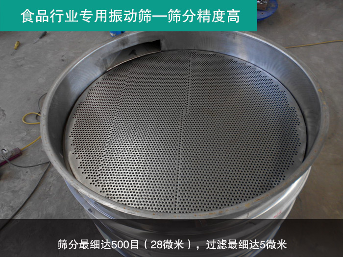 不銹鋼振動(dòng)篩篩分精度高,篩分細(xì)達(dá)500目(28微米),過(guò)濾細(xì)達(dá)5微米,符合食品行業(yè)的高精度篩分需求。